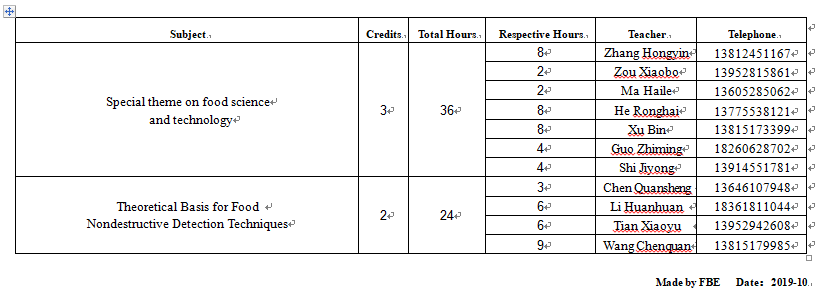 Time Table of Specialized Subjects for FBE Ph.D candidates in Academic Year 2019-2020(1)