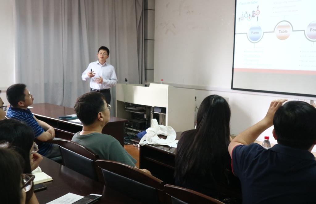 On Jun. 22, Dr. Changmou Xu from University of Nebraska-Lincoln, visited Jiangsu University. Changmou Xu delivered an academic lecture named Applied Research on Berries and Miscellaneous Plant Foods. Prof. Zou Xiaobo, Dean of School of Food and Biological Engineering, hosted the lecture and introduced Dr.Changmou Xu. Some faculty members and Foreign –Sino students of the school attended the lecture.