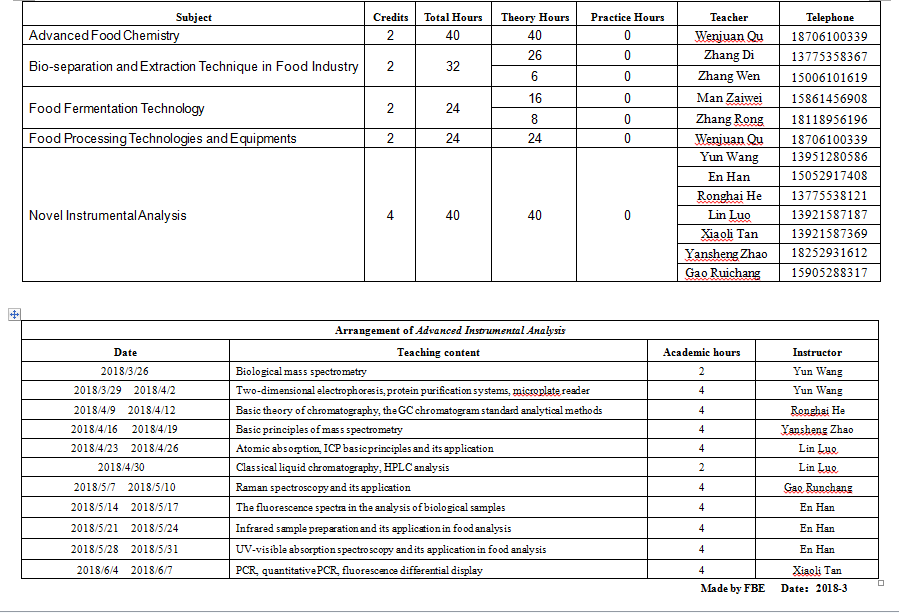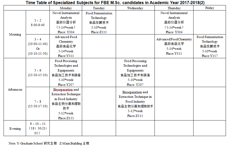 Time Table of Specialized Subjects for FBE M.Sc. candidates in Academic Year2017-2018(2)