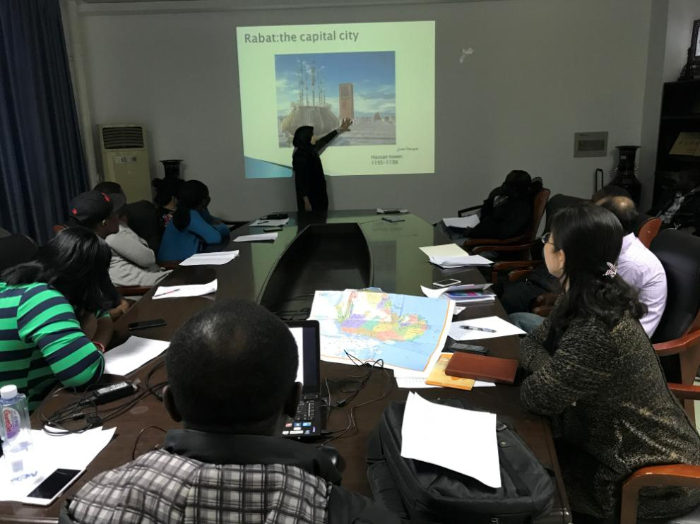 On Nov. 9, 2017, the meeting room of school of food science and engineering was the gathering point for overseas student of FBE, whom held a successful meeting with Miss. Wang for Exchanging cultures. Hafida WAHIA, a PhD student in school of food science and engineering presented her home country ‘the kingdom of Morocco’, she mentioned that her country is an ancient kingdom that lies at a magical crossroads of culture, language and history that has produced one the richest, most compelling and beautiful countries on the planet. Miss. Wang, our class teacher, hold a mini-talk about oral Chinese, she gathered students from several countries and cultures such as Ghana, Zimbabwe, Nigeria, Morocco, Mongolia and Pakistan to speak one language which is the Chinese language in order to become more flexible in daily life and to facilitate the integration to the Chinese culture.