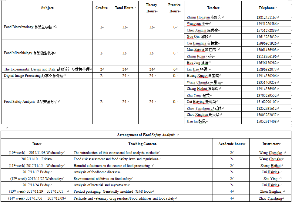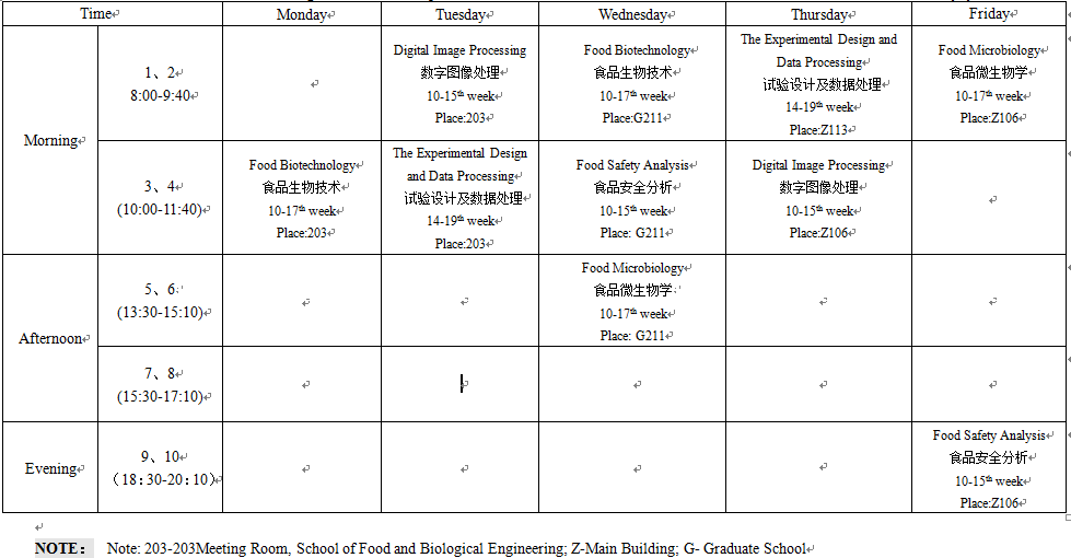 Time Table of Specialized Subjects for FBE M.sc candidates in Academic Year 2017-2018(1)