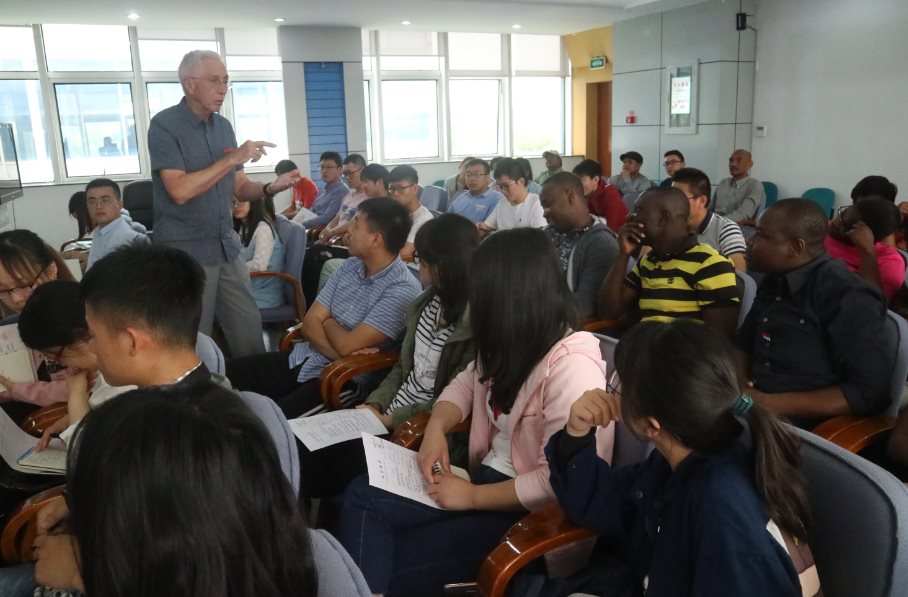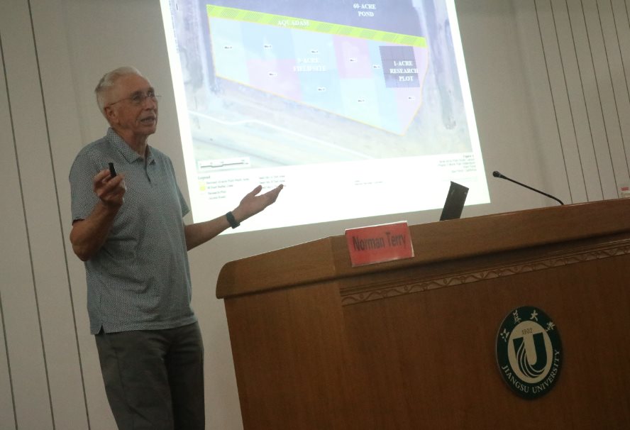 On May 15, Norman TerryDepartment of Plant and Microbial Biology, University of California, Berkeley, was appointed part-time professor of Jiangsu University. At the ceremony, Ma Haile, Party Branch Secretary of School of Food and Biological Engineering, presented Prof. Norman Terry a letter of appointment, and decorated Prof. Norman Terry wth a Jiangsu University emblem. Prof. Ma Haile made a brief introduction of Prof. Terry’s Curriculum Vitae and major academic achievements. More than 100 Sino-foreign faculty members and students of the school attended the ceremony. After the ceremony, Prof. Norman Terry made a lecture entitled A Personal Approach to Manuscript Writing and Other Aspects of Research. After the ceremony, Prof. Terry made an academic lecture entitled Phytoremediation of Contaminated Soil and Water. He also visited museum of our school.
