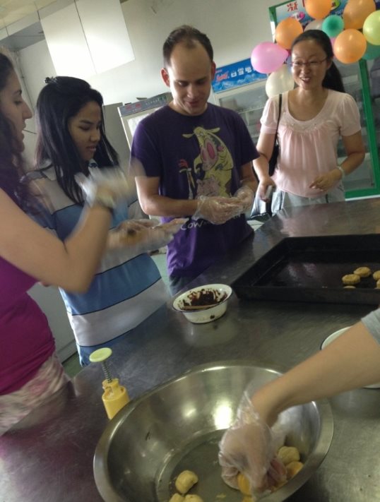 The activity of the Mid-Autumn Festival was jointly hosted by FBE (School of Food and Biological Engineering) and OEC ( Overseas Education college). Some foreign students come to FBE to learn more about making moon cakes. On the 15th day of the 8th month of the lunar calendar, the moon is full and it is time to mark the Moon Festival, or the Mid-Autumn Festival. The round shape symbolizes family reunion. A happy Mid-Autumn Festival.