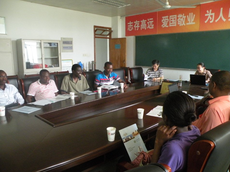 Currently, there are 11 overseas graduate students studying in School of Food and Biological Engineering. They come from Ghana, Cameroon, Sudan and Egypt. In order to make overseas students integrate into a relaxed academic environment, an orientation about research and graduation requirements was organized for the students on 24th, May, 2013. At the seminar, Prof. Ma Haile, the Dean of the School of Food and Biological Engineering, introduced the school; Prof. Huang Xingyi, vice Dean, made a presentation entitled Graduate Student Training Program. The content of the presentation included the Program and code, Period of study and Credit Requirements, Coursework and Examinations, Dissertation Schedule, Dissertation Design and Research Approval, Assessment of Seminars, Regulations on publishing academic papers, Regulations on publishing academic papers, checkup and external assessment Comments, Dissertation Defense, Degree Evaluation, etc.