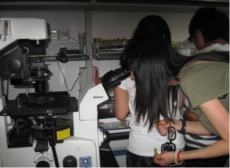 A practical team of visited environment monitoring center of Change Zhou enviromental protection agency。The staff of environmental protection agency introduced biological monitoring methods to our students.