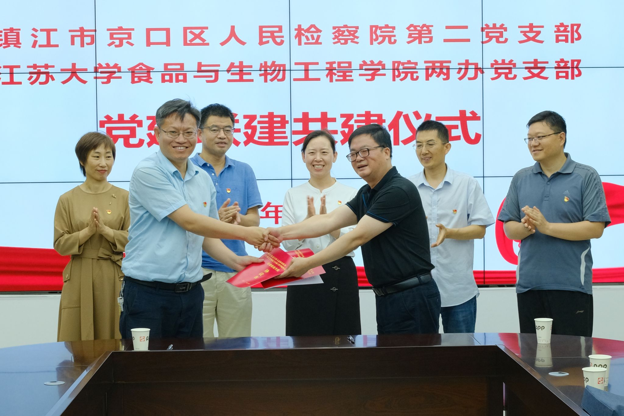 两办党支部与京口区检察院第二党支部签署校检合作共建协议。京口区检察院党组成员、政治部主任、党总支书记杨钰,党总支副书记、第二党支部书记张波,成人影视片
