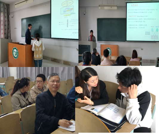 面向大四考研同学,为解决同学们备考和未来研究生水平的专业知识学习上的专业疑难问题,10月28日生物技术系党支部组织专业课党员教师,从《遗传学》、《生物化学》、《细胞生物学》、《分子生物学》四个方向为同学们辅导答疑。在主A楼408教室,生物技术系师生进行了开放式互动讲学。同学们现场提问,王云、蔡梅红、王勇、伍娟等9位教师则进行了大家共性问题的精讲和一对一个性化问题的具体解答,现场气氛十分活跃。活动中教学相长,既帮助解决了同学考研专业课复习的困难,又帮助教师们发现了学生学业进阶发展的知识需求和教师教学后续完善课程内容的要点。