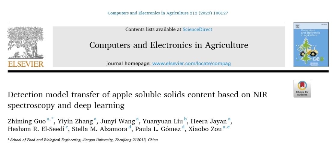 近日,郭志明教授课题组在农业科学领域Top期刊Computers and Electronics in Agriculture(Q1,园艺类第1)上发表了题为“Detection model transfer of apple soluble solids content based on NIR spectroscopy and deep learning”的研究论文。成人影视片