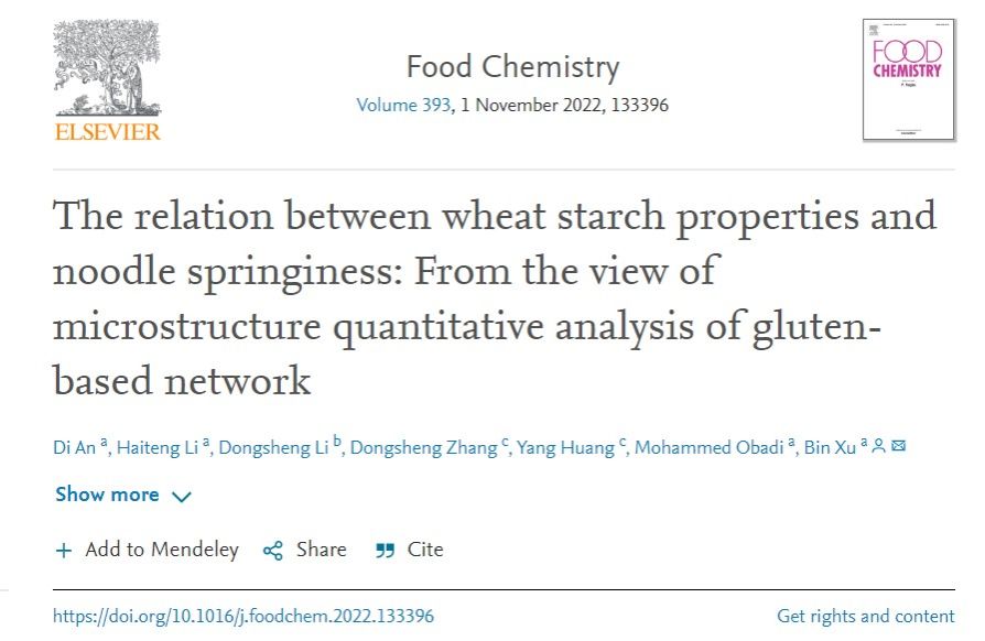 徐斌教授课题组在Food Chemistry在线发表题为“The relation between wheat starch properties and noodle springiness: From the view of microstructure quantitative analysis of gluten-based network”的研究成果,系统解释了面条加工过程中面筋网络形成程度对煮后面条弹性的影响,可为挂面原料筛选提供参考。成人影视片