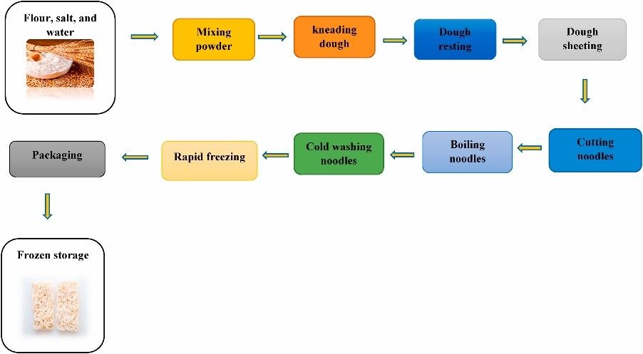 FCN品质很大程度上受面条制作过程的影响。面条的原料和加工制作过程显著影响面条的品质特性和适口性。速冻能够抑制面条内水分的迁移和维持产品品质。面条整体品质随着零下温度储存时间的增加而下降。在冷冻储存期间FCN内部结构中冰晶的形成是影响面条品质的一个重要因素。添加剂例如亲水胶体、乳化剂、变性淀粉、抗冻蛋白和可食用胶发挥着面团改良剂的作用,能够降低冻藏期间面条可冻结水含量。对冻藏期间FCN品质改变和内在机制以及相应改善方法的理解和认识有助于生产商制造出能够满足越来越多消费者对即食食品例如FCN需求的产品。