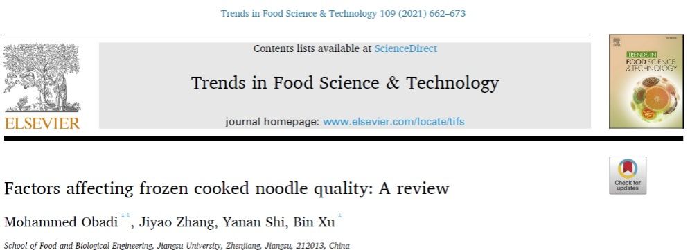 徐斌教授课题组标题为“Factors affecting frozen cooked noodle quality: A review”(影响冷冻熟面品质的因素:综述)的综述文章在国际食品领域TOP期刊(No.1)《Trends in Food Science & Technology》发表。成人影视片