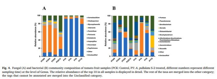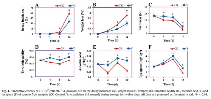 张红印教授在国际食品领域顶级期刊Postharvest Biology and Technology在线发表题为“Aureobasidium pullulans S-2 reduced the disease incidence of tomato by influencing the postharvest microbiome during storage”的研究论文(//doi.org/10.1016/j.postharvbio.2021.111809),研究了出芽短梗霉对番茄采后病害的控制效果及其对番茄表面微生物组的影响。本文的第一作者为成人影视片