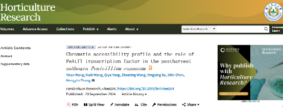 张红印教授团队在植物学领域Top期刊《Horticulture Research》上在线发表论文“Chromatin accessibility profile and the role of PeAtf1 transcription factor in the postharvest pathogen Penicillium expansum”。成人影视片