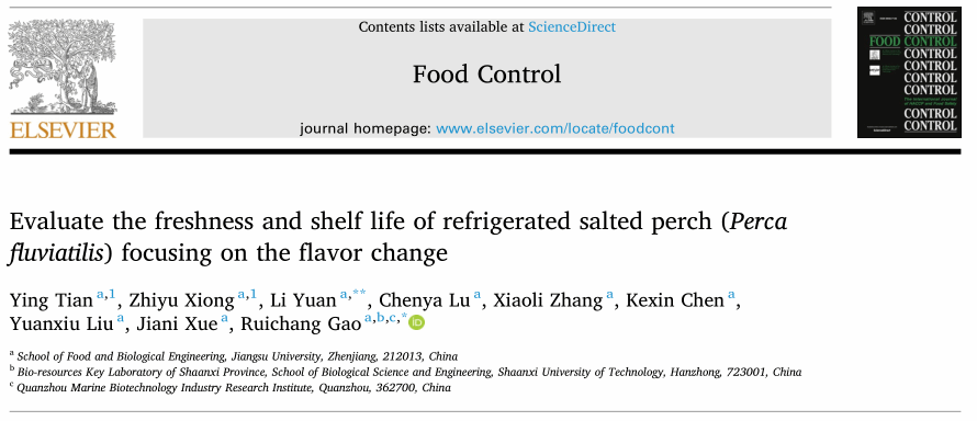 高瑞昌教授团队在国际期刊《Food Control》(Q1,IF2025=5.6)上发表题目为“Evaluate the freshness and shelf life of refrigerated salted perch (Perca fluviatilis) focusing on the flavor change”的研究型论文。成人影视片