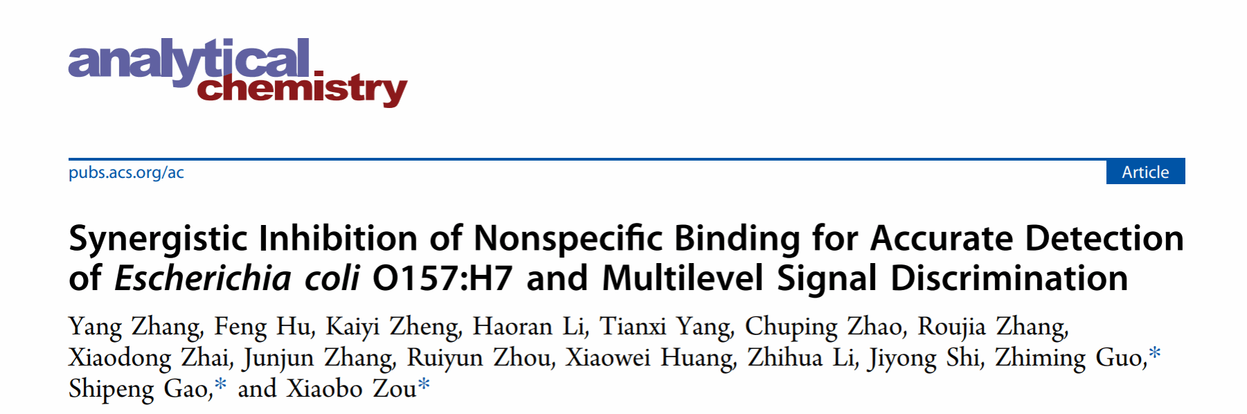 邹小波教授课题组在国际食品领域TOP期刊Analytical Chemistry上发表题为“Synergistic Inhibition of Nonspecific Binding for Accurate Detection of Escherichia coli O157:H7 and Multilevel Signal Discrimination”的研究论文。成人影视片