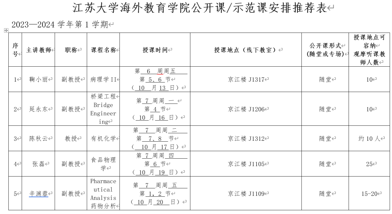 动员和组织教师们线下观摩了海外教育学院英文公开课。英文公开课安排如下图所示: