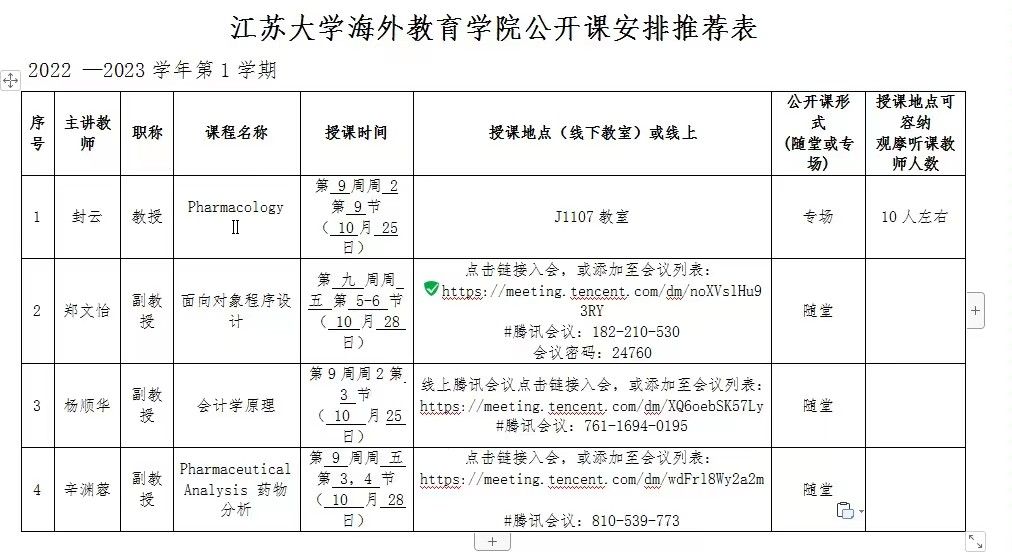 为响应海外教育学院(以下简称海院)号召,促进学院教师全英文教学能力与水平的提升,近期成人影视片 动员、组织教师在线上或线下观摩海院英文公开课。海院英文公开课安排如下图所示: