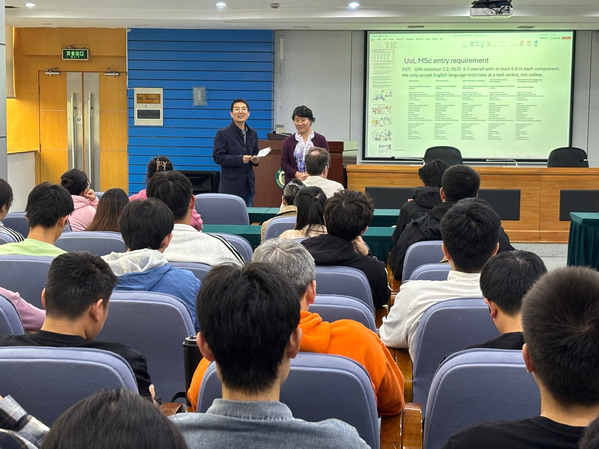 2024年11月1日下午,英国利兹大学国际处处长Julia Wang女士、英国利兹大学Gong Yunyun教授以及英国莱斯特大学Mike Routledge副教授到访成人影视片 。成人影视片 国际处邹时建副处长、成人影视片 周存山副院长、成人影视片 本科生和研究生共80余人参加了此次活动。