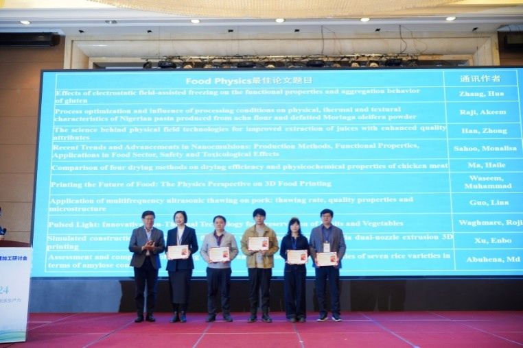 食品物理加工研究院院长马海乐共同为联合体揭牌。联合体旨在加强食品物理加工技术领域的交流与合作,整合高校、科研院所和企业的资源优势,搭建产学研融合的平台,加速技术创新和产业化应用,携手攻克食品物理加工的关键技术难题,推动食品产业的高质量发展。同时,会议还举行了由我校创办的首个英文期刊《Food Physics》最佳论文奖颁奖仪式。
