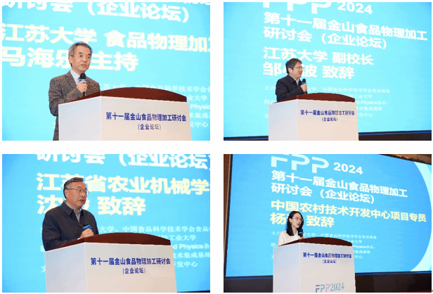 将紧紧抓住机遇,为助力中国食品工业可持续发展,为打造中国食品科技强国地位作出积极的贡献。沈毅理事长在致辞中指出,食品物理加工是现代物理学和工程技术与传统食品科学深度交叉融合的产物,由其产生的一系列新技术已经成功地被应用于农产品初加工和食品制造的各个环节,促使食品工业向着高效、绿色、节能、智能化的方向发展,在食品产业的转型升级中发挥着重要的引领作用。他希望,与会的专家们积极参与到食品物理加工技术与装备的研发中去,加强理论创新与产业实践的结合,拓宽食品物理加工技术的应用范围,为实现机械化智能化引领农业农村现代化做出新的更大的贡献。杨甜专员在致辞中指出,改革开放40年来,我国食品工业取得了长足发展,食品工业规模化、集约化、智能化、绿色化发展水平明显提升,供给质量和效率也显著提高。我们要以党的二十届三中全会精神为指导,以新质生产力理论为依托,把握国家创新体系改革布局,结合我国食品物理加工领域的实际情况,明确食品物理加工的发展方向,加强企业在科技创新中的主体地位,进一步推动食品物理加工领域在支撑农业强国、科技强国建设中发挥重要作用。希望参会的各位食品物理加工领域的企业家和专家以此次会议为契机,树立和践行大食物观,持续深化“新食品”与“物理场”协同创新,推动食品产业的技术突破和产业升级。