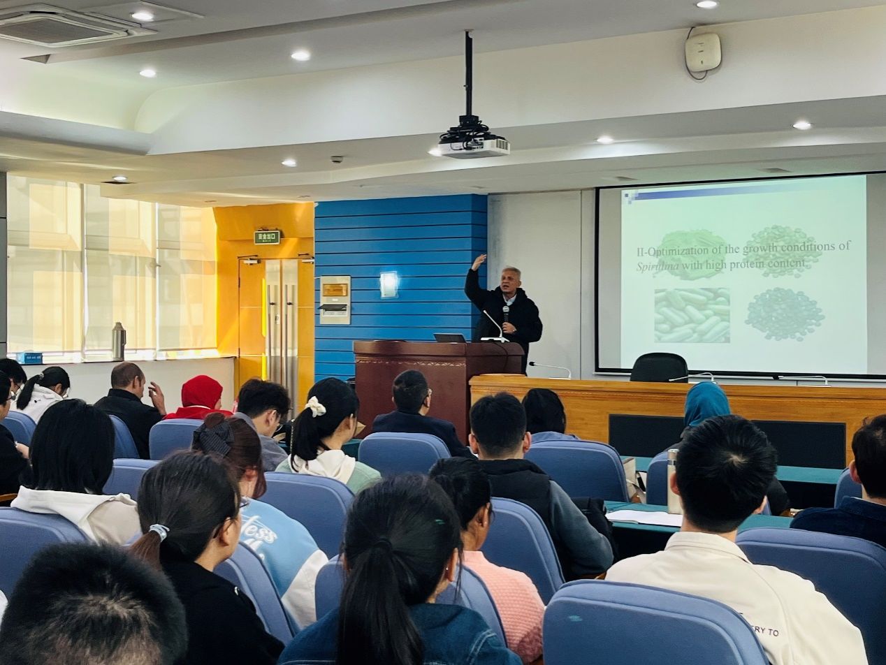 访问交流。在会议中心第三报告厅,Mostafa 教授以“微藻饲料在罗非鱼养殖中的应用”为题作专题报告,系统解析微藻资源在水产养殖领域的应用潜力与研究进展,为校企双方拓展蓝藻多路径利用提供关键思路。成人影视片